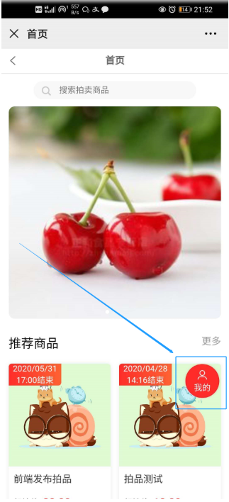 聚合页中,点击“我的”图标(如下图),进入拍卖会员中心,查看会员参与的拍卖,保证金记录、我的收藏等